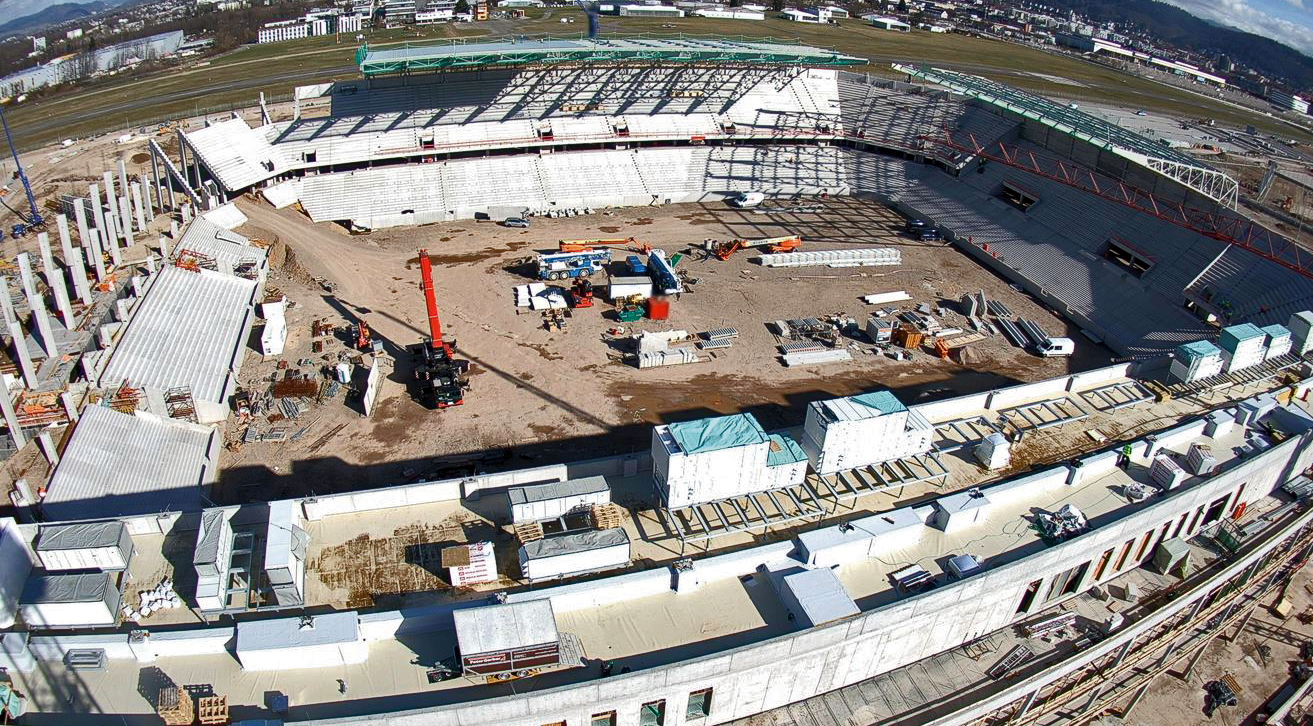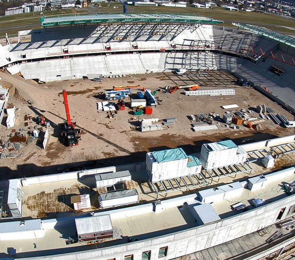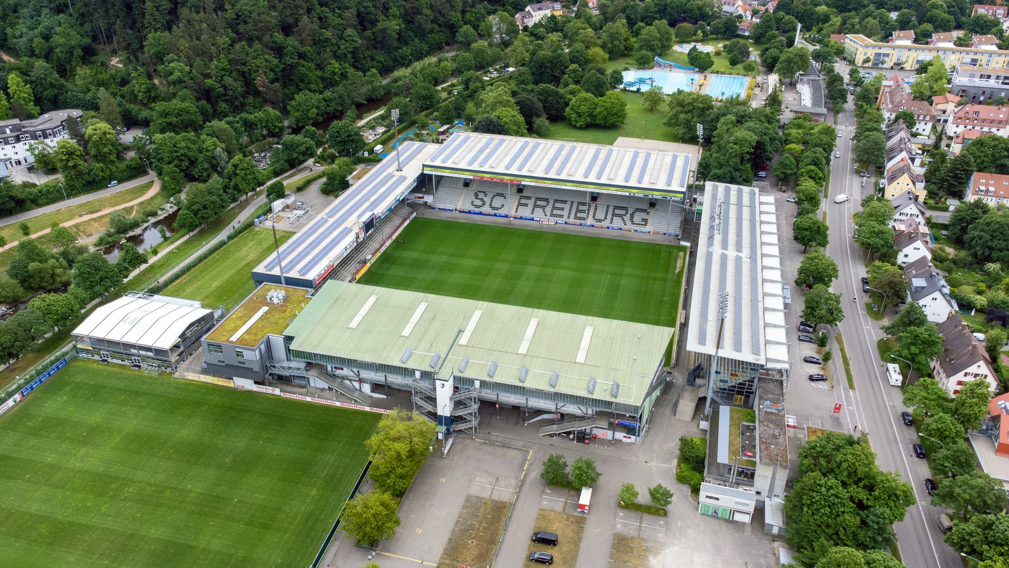 Das im Jahr 1954 erbaute Dreisamstadion, Heimat des SC Freiburg, entspricht nicht den DFL-Richtlinien und kann nur aufgrund einer Sondergenehmigung für Bundesligaspiele genutzt werden. 2012 wurde deshalb der Beschluss für einen Neubau mit 24.000 Plätzen getroffen. Nach Genehmigung und Baubeginn im Jahr 2018 wurde das neue Stadion 2021 fertiggestellt.Verschiebungen bis ± 30 mm im Bereich der Dach- und Tribünenkonstruktion sollen aufgenommen werden. Aufgrund der großen freitragenden Dachkonstruktion aus Stahl ist mit temperaturbedingten Längenänderungen der Stahlträger zu rechnen. Diese Bewegungen müssen ohne Beschädigung der Stützstruktur möglichst reibungsarm übertragen werden, bei gleichzeitiger zentrischer Einleitung der anstehenden Lasten und Aufnahme von Durchbiegungen der Stahlkonstruktion.