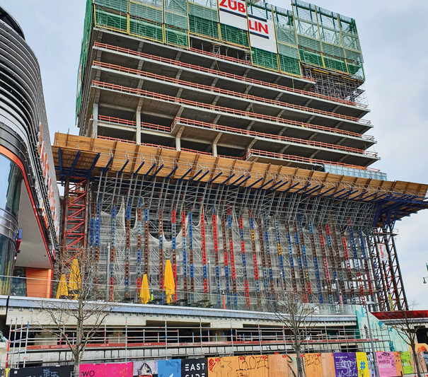 Inmitten Berlins ist ein 36-stöckiges und 143m hohes Gebäude mit 80.500m² Geschossfläche und markanter Fassadenstruktur entstanden:EDGE East Side Berlin. Besonderen Wert wurde bei diesem Bauvorhaben auf nachhaltiges Bauen gelegt. Das Unternehmen Amazon belegt als Ankermieter die Mehrheit der Bürogeschosse und verleiht dem Bauwerk den Beinamen „Amazon-Tower“.