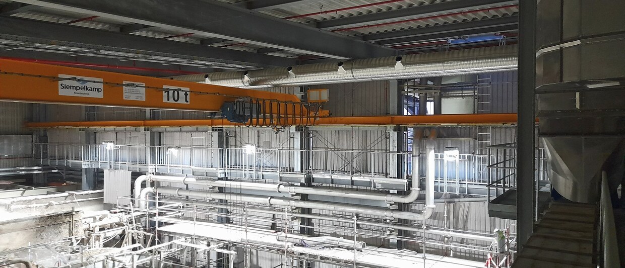 Die Aufgabe war die schalltechnische Entkopplung der Baustelle von der laufenden Produktion und den Anwohnern.Das Büro für Anlagenplanung Andreas Ziegenbein plante die Hallenerhöhung und -erweiterung einer bestehenden Fabrikationshalle der Papier- u. Kartonfabrik Varel und begleitete die Ausführung der Arbeiten. Nachdem die Gebäudehülle zum größten Teil fertiggestellt war, wurde die bestehende Halle teilweise abgetragen, um den neu gewonnenen Platz optimal zu nutzen. Dazu wurde ein Teil der neu zu bauenden Fassade offengelassen, um die Arbeiten an der Struktur der alten Halle durchzuführen.