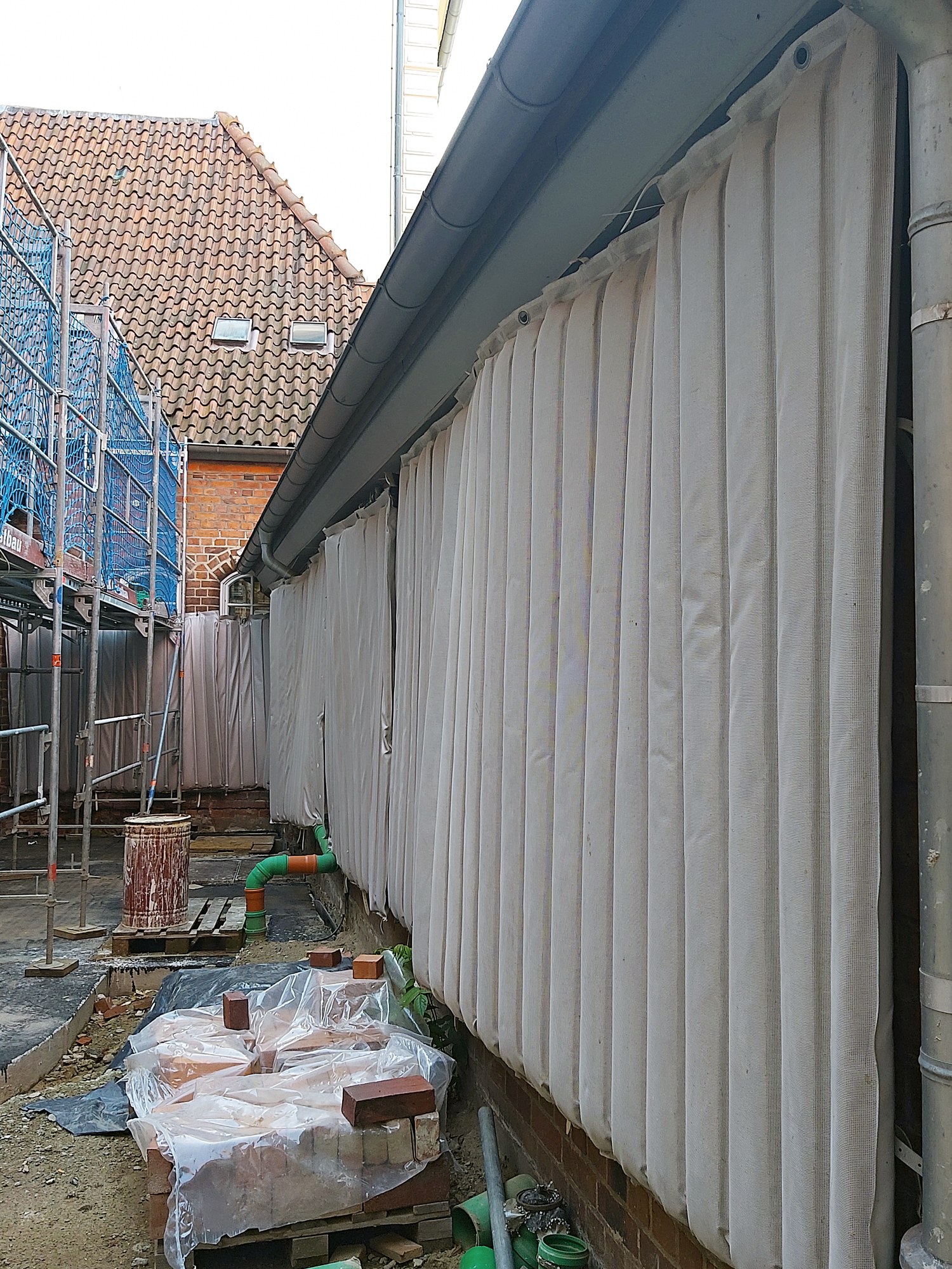Um diese Geräuschbelästigung wirksam einzudämmen, wurde für die Zeit der Stemmarbeiten die Außenfassade der Tourist-Info-Räume mit Cisilent Typ E verkleidet.Es handelt sich hier um zwei Wände mit Fenstern zum gemeinsamen Innenhof. Durch den Einsatz von Cisilent Typ E wurde der Baustellenlärm so reduziert, dass die Mitarbeiter der Touristeninformation wieder ohne Einschränkungen arbeiten konnten.